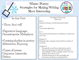 Want some ideas on how to keep the writing curriculum fresh, even on those long Winter days?  Then look no further!  Poetry + Figurative Language = FUN during your writing block that will keep the creative juices flowing.